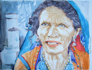 | Rajasthani Woman: watercolour. Source: video frame. |